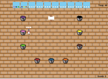 - Go around to each bucket and pick up the appropriate paint. Once you have the three colors in the correct order, paint the canvas to submit the order!